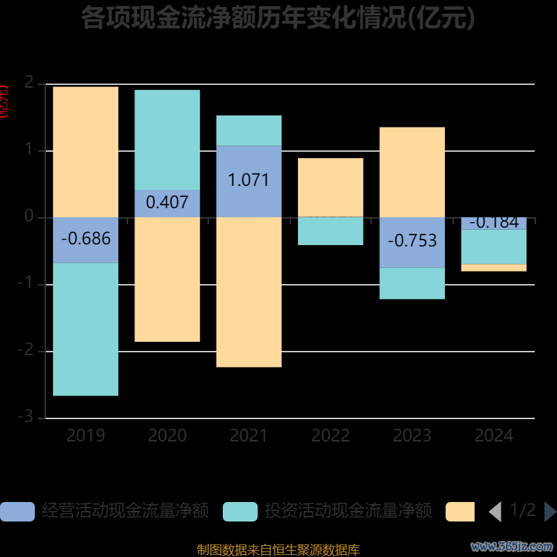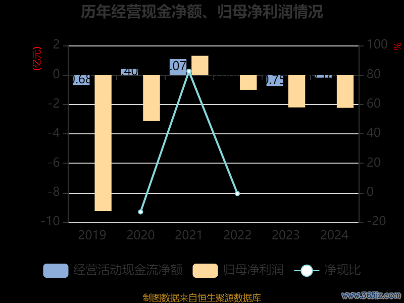 截至2024年,公司经营活动现金流净额为-1839.76万元,同比增加5690.22万元;筹资活动现金流净额-1076.66万元,同比减少1.46亿元;投资活动现金流净额-5166.59万元,上年同期为-4727万元。