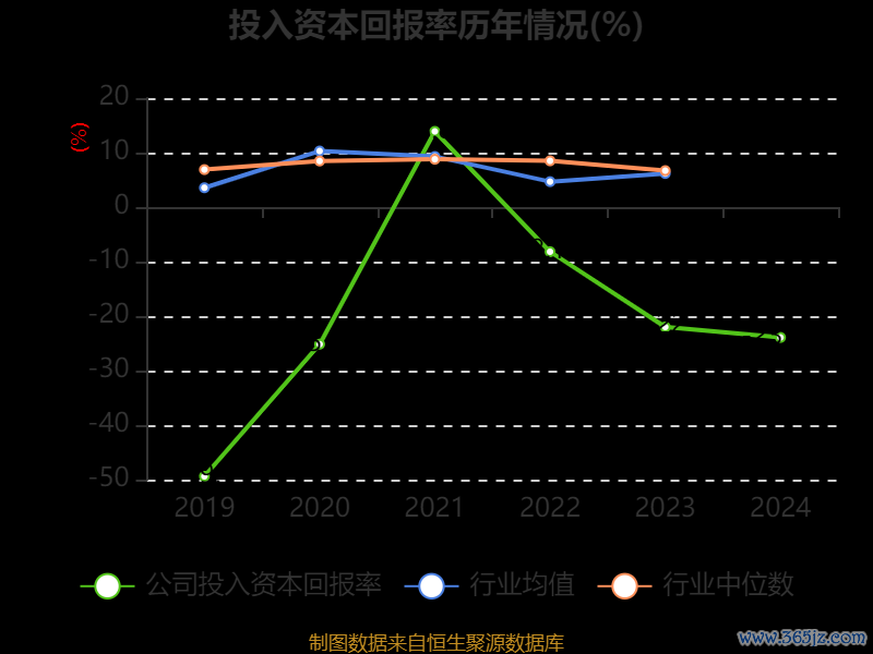 数据显示,2024年公司加权平均净资产收益率为-68.22%,较上年同期下降28.08个百分点。公司2024年投入资本回报率为-23.92%,较上年同期下降1.92个百分点。